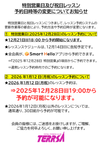 レッスン予約日時なども変更がありますので、ご注意ください!