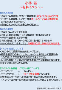 2026年3月20日(金・祝) 小林インストラクター・有料スペシャルレッスン開催!~マルチステップ~