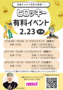 2月23日(月・祝) hirocky(ヒロッキー)インストラクター・有料スペシャルレッスン開催!~豪華3本立て~
